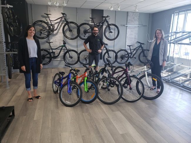 M. Jimmy Coll, propriétaire de la boutique Mon Vélo, est fier de remettre à Mme Dominique Parent, chef en réadaptation et Mme Peggy Bourque-Ouellet, directrice générale de la Fondation de la santé et des services sociaux de Manicouagan, un don de cinq vélos reconditionnés pour l’unité Envolée du Centre de réadaptation et de protection de…