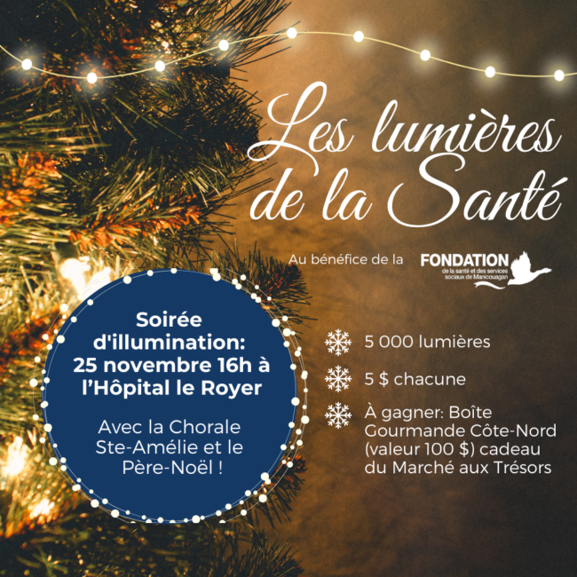 La Fondation de la santé et des services sociaux de Manicouagan annonce le retour de sa campagne les Lumières de la Santé pour une deuxième année. Consulter le communiqué ici !