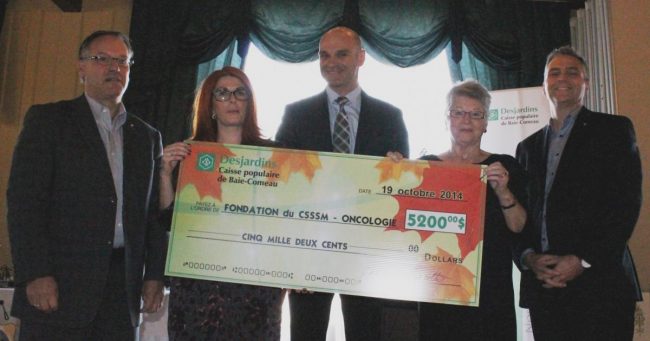 Télécharger le communiqué en fichier PDF Communiqué – 2014-10-22. Baie-Comeau, le 22 octobre 2014 – Le 19 octobre dernier, une centaine de membres et d’employés de la Caisse Populaire Desjardins de Baie-Comeau, ainsi que des gens d’affaires et citoyens de la région, étaient réunis pour un brunch bénéfice sous la présidence d’honneur du Dr Nicolas…